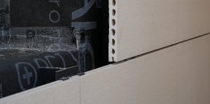 Els materials aïllants més habituals per aplicar a una façana ventilada són el poliestirè (EPS) i la llana de roca, que es caragolen al mur de suport de l’edifici. Segons els objectius del sistema d’aïllament és possible incorporar a sobre de les plaques de l’aïllant una làmina impermeable.